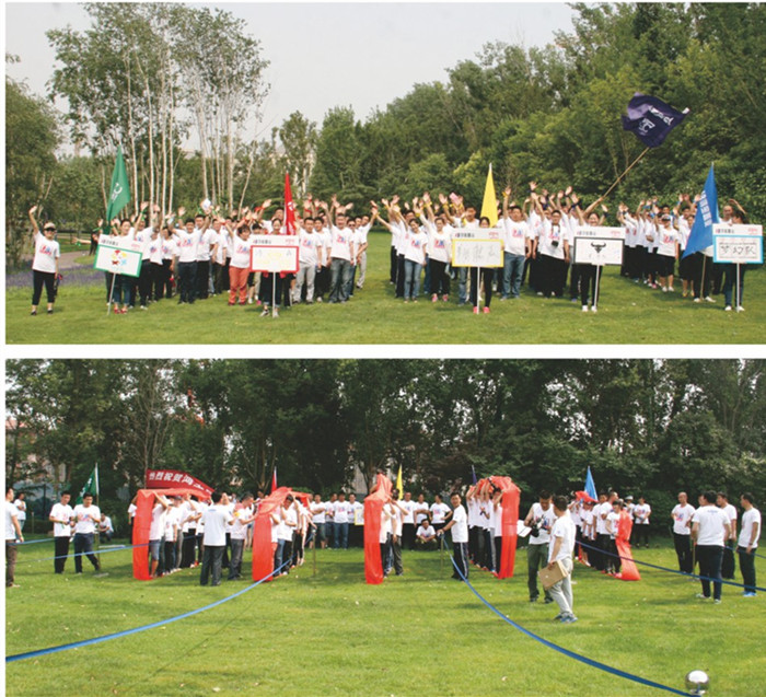 下午3時,在親水平臺附近的草坪舉行了“財源滾滾”游戲項目,各組在我們用布條已制作好的可以容納12-15人的封閉式大圓環(huán)內(nèi)行走,由裁判統(tǒng)一發(fā)布口令出發(fā),以圓環(huán)全部通過30米跑道到達終點線為止。用時最少且全隊到達者獲勝。