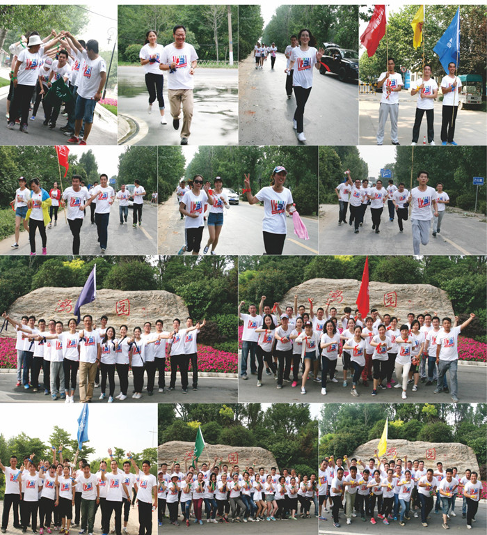 千呼萬喚始出來的終極挑戰(zhàn)-勇往直前(2800畝鴻園環(huán)行)在最后等待著考驗大家的意志。由景觀示范區(qū)門口出發(fā)沿鴻苑路向北途經(jīng)興達路-東四環(huán)-任莊村路-鴻寶路,最終回到景觀示范區(qū)。中途設(shè)三道關(guān)卡,每一方陣需通過層層考驗,品嘗含有酸、甜、苦、淡、咸等五種味道的飲品,并接受相應(yīng)處罰后方可繼續(xù)前進。勇往直前考驗的不僅僅是每一個人的耐力與毅力,更是對一個團隊凝聚力與否的檢驗。出發(fā)前領(lǐng)導(dǎo)們和我們的各方陣隊員們于“鴻園”石刻前進行了“全家福”環(huán)節(jié),洋溢著燦爛微笑的臉龐上寫滿了每一個鴻寶人的張揚與自信。